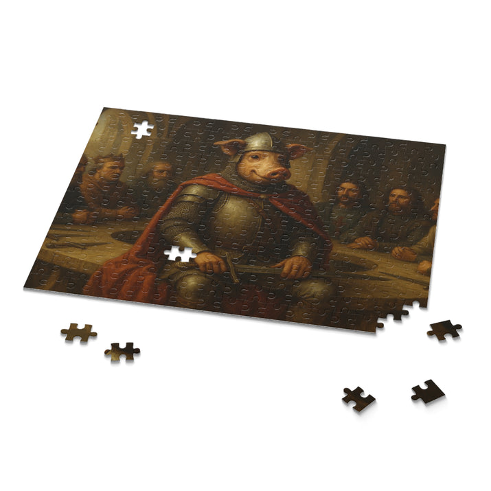 Artistic 500-Piece Puzzle - Intriguing Historical Scene Featuring a Pig and a Confronted Figure