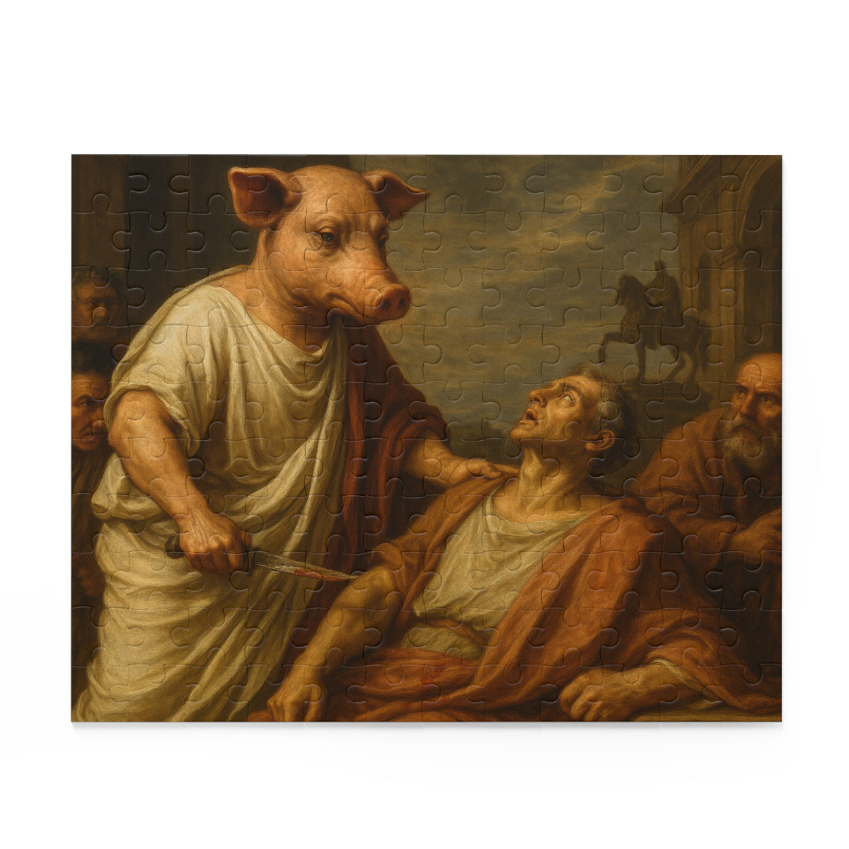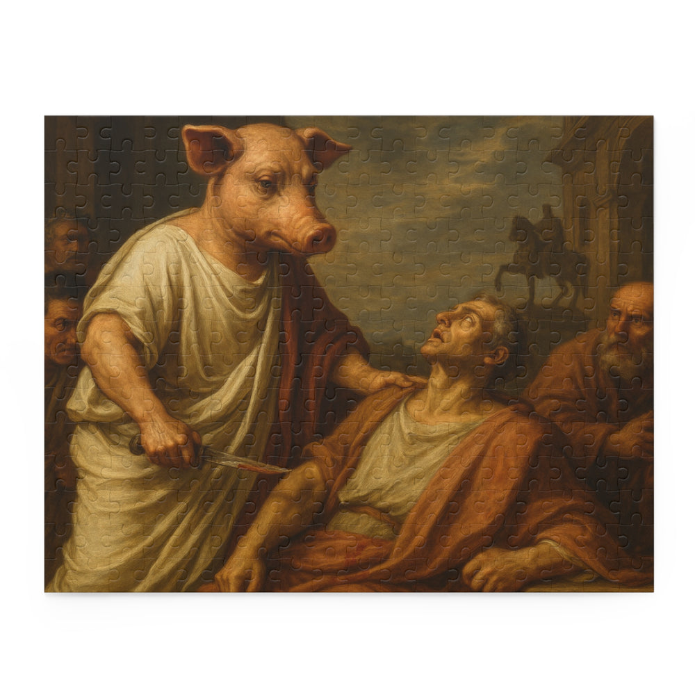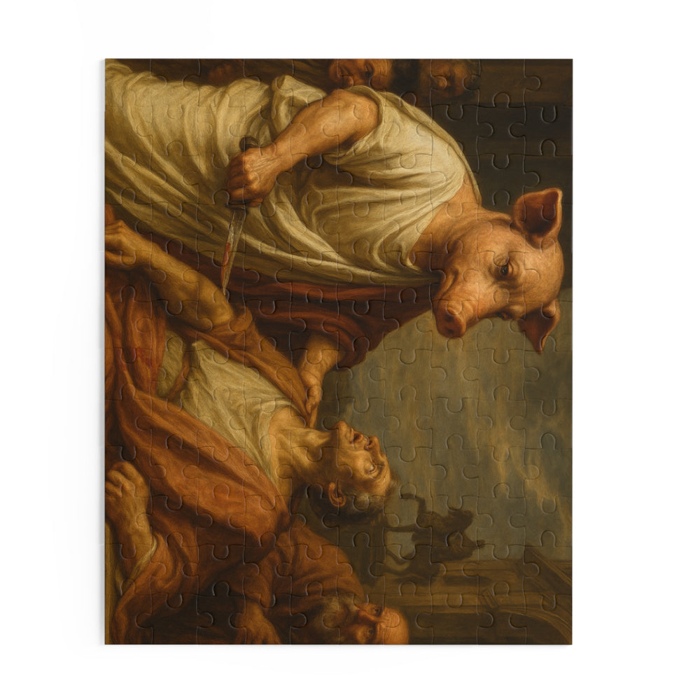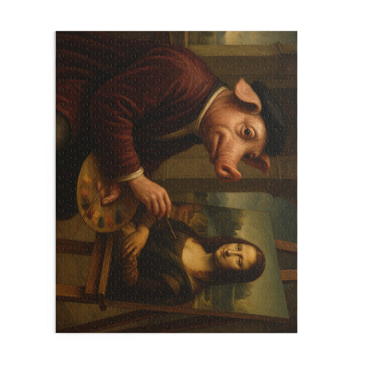 Artistic 500-Piece Puzzle - Intriguing Historical Scene Featuring a Pig and a Confronted Figure
